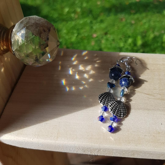 Cette paire de boucles d'oreilles a été créée pour être le prolongement d'un attrape-soleil. Vous emportez cette création unique avec vous partout et tout le temps, selon vos envies.